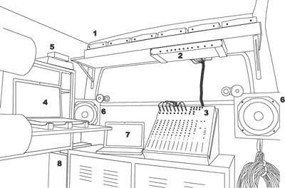 Das Tonstudio umfasst das notwendige Equipement für die Audio- und Video-Aufzeichnung. Darüber hinaus stehen Kopfhörer bereit auf denen Passanten das akustische Geschehen live nachvollziehen können.
